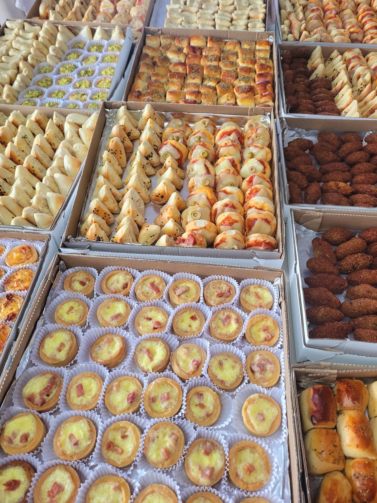 Esfirras, Pasteis Assados, Enroladinho de Salsicha.